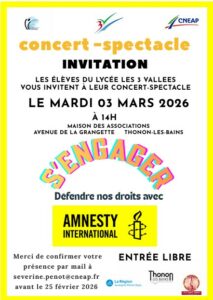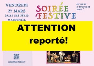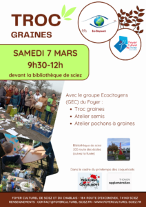 ← Février 2026 Avril 2026 → Mars 2026 Annulé ANNULE /// Atelier taille des fruitiers et découverte du jardin foret dimanche 1 mars 2026 de 10:00 à 12:00 Annulé Concert-spectacle « S’engager » mardi 3 mars 2026 de 14:00 à 15:00 Annulé Projection-débat MUGANGA jeudi 5 mars 2026 de 20:00 à 22:30 Annulé « La place de l’entourage dans la protection de l’enfant » vendredi 6 mars 2026 de 09:00 à 12:30 Annulé « La force de la voix des femmes » vendredi 6 mars 2026 de 18:45 à 22:19 Annulé Projection « REBUILDING » vendredi 6 mars 2026 de 20:30 à 22:30 Annulé Troc Graines samedi 7 mars 2026 de 09:30 à 12:00 Annulé Atelier semis de tomates – Saint-Cergues samedi 7 mars 2026 de 10:00 à 12:00 Annulé Atelier semis de tomates Brenthonne samedi 7 mars 2026 de 14:00 à 16:00 Annulé GRAND LOTO samedi 7 mars 2026 de 16:30 à 21:30 Annulé Projet Zone Rrrr – Réunion jeudi 12 mars 2026 de 19:00 à 21:00 Annulé Projection-débat SOULÈVEMENTS jeudi 12 mars 2026 de 20:00 à 22:30 Annulé VERS ELLES – VERSOIE vendredi 13 mars 2026 de 09:00 à 21:00 Annulé Et si on semait ? vendredi 13 mars 2026 de 14:30 à 17:00 Annulé Parents Solos : groupe de paroles vendredi 13 mars 2026 de 18:15 à 20:00 Annulé Rencontre mensuelle LPO Chablais vendredi 13 mars 2026 de 19:45 à 22:15 Annulé Projection « LOW TECH » vendredi 13 mars 2026 de 20:30 à 23:30 Annulé Atelier semis de tomates Armoy samedi 14 mars 2026 de 09:30 à 13:30 Annulé Atelier semis de tomates Douvaine samedi 14 mars 2026 de 10:00 à 12:00 Annulé Atelier greffe des fruitiers dimanche 15 mars 2026 de 10:00 à 12:00 Annulé « Comment partager la montagne ? » mercredi 18 mars 2026 de 20:00 à 22:00 Annulé Projection de : La Loi de la Jungle jeudi 19 mars 2026 de 20:00 à 22:30 Annulé Projection-débat A DEMAIN SUR LA LUNE vendredi 20 mars 2026 de 20:00 à 22:00 Annulé Projection « DES PREUVES D’AMOUR » vendredi 20 mars 2026 de 20:30 à 22:30 Annulé BAL FOLK d’équinoxe samedi 21 mars 2026 de 18:00 à 22:00 Annulé Petit-Déjeuner des Associations : Le financement mardi 24 mars 2026 de 08:30 à 10:30 Annulé La Tournée des Racines – projection et témoignages mardi 24 mars 2026 de 19:30 à 22:00 Annulé Projection-débat « L’affaire Abdallah » mardi 24 mars 2026 de 20:00 à 22:30 Annulé Journée des métiers de l’eau mercredi 25 mars 2026 de 13:30 à 17:00 Annulé Atelier semis de tomates – Marin mercredi 25 mars 2026 de 14:30 à 16:30 Annulé Film « Cultiver la pluie » jeudi 26 mars 2026 de 18:30 à 20:30 Annulé VENTE DE LIVRES D’OCCASION 27 au 28 mars 2026 Annulé Soirée Festive REPORTÉE au 18 avril vendredi 27 mars 2026 de 18:45 à 22:59 Annulé « Géopolitique des États-Unis d’Amérique : 1776 – 2026 » vendredi 27 mars 2026 de 20:00 à 22:00 Annulé Projection « RUE MALAGA » vendredi 27 mars 2026 de 20:30 à 22:30 Annulé BOURSE PETITE ENFANCE samedi 28 mars 2026 de 09:00 à 17:00 Annulé Réparations de printemps ? samedi 28 mars 2026 de 10:00 à 16:00 Annulé FESTIVAL DU FILM VERT 28 au 29 mars 2026 Annulé Cultivons la biodiversité dimanche 29 mars 2026 de 10:00 à 17:30 Annulé Projection-débat : « Palestine 36 » dimanche 29 mars 2026 de 17:00 à 20:00 Annulé Conférence : L’autisme à l’âge adulte lundi 30 mars 2026 de 19:00 à 20:30