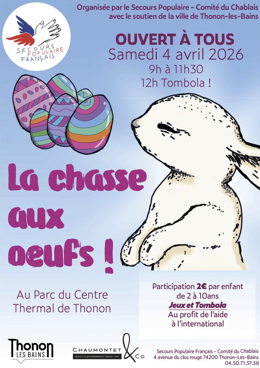 À la fin des activités, vers midi, aura lieu le tirage au sort de la tombola dont le premier prix sera un grand oeuf en chocolat gentiment offert par l’artisan pâtissier Chaumontet.