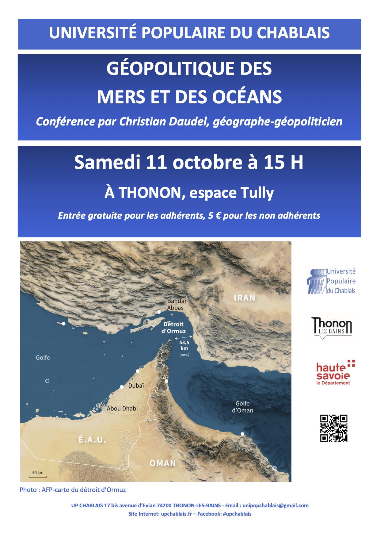Ses conférences mettent en lumière l’importance stratégique de ces passages maritimes, souvent considérés comme des goulets d’étranglement. Les crises géopolitiques dans des zones comme Malacca, Bab-el-Mandeb et Ormuz illustrent les tensions actuelles dans la géopolitique maritime.