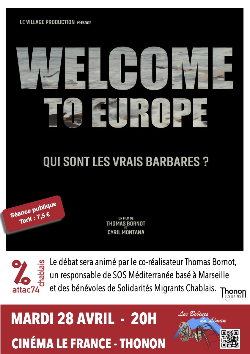 Séance parrainée par Attac 74Chablais. Le débat sera animé par le co-réalisateur Thomas Bornot, un responsable de SOS Méditerranée basé à Marseille et des bénévoles de Solidarités Migrants Chablais.