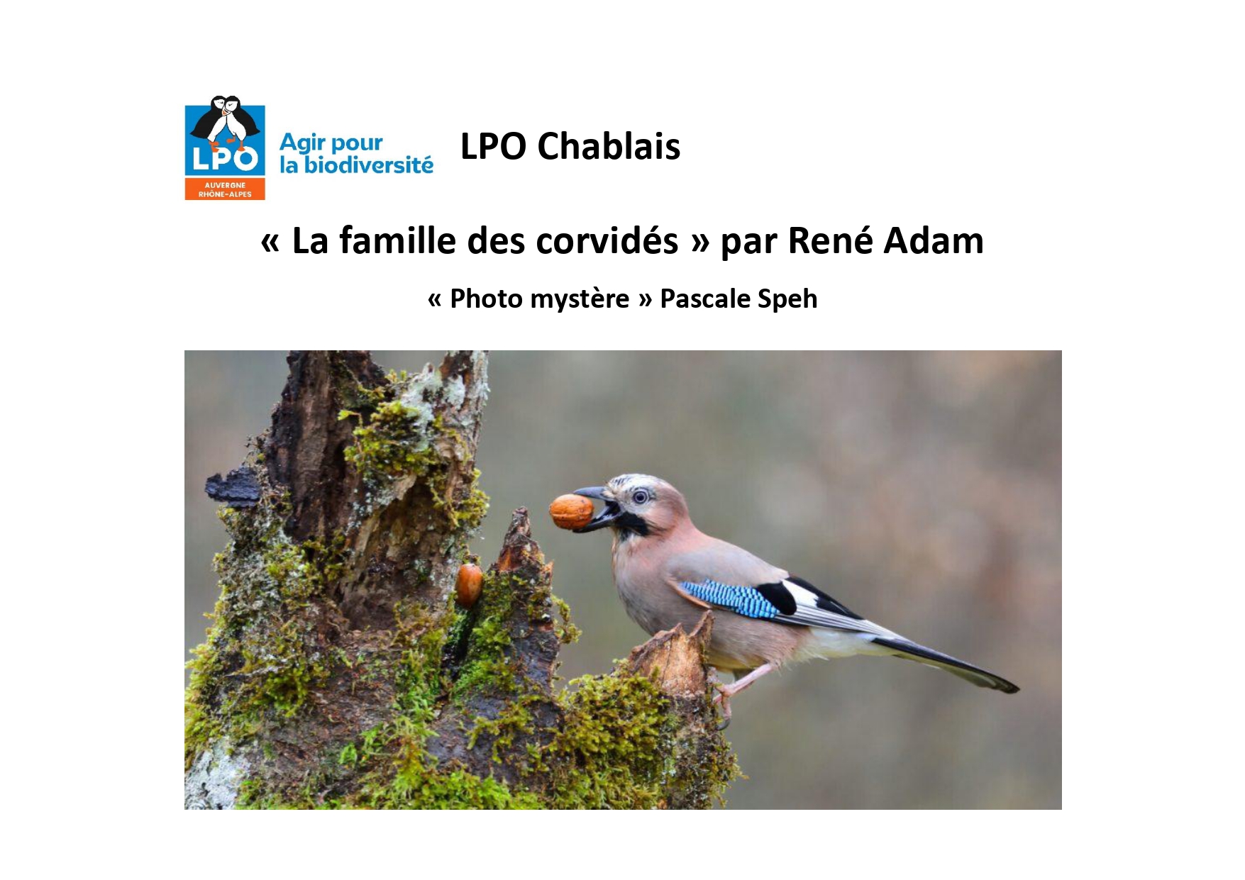 – Actualités de la LPO et du groupe Chablais – Présentation de « La famille des corvidés » par René Adam.